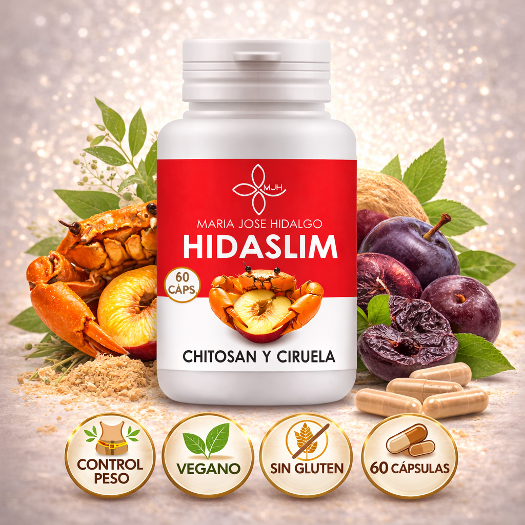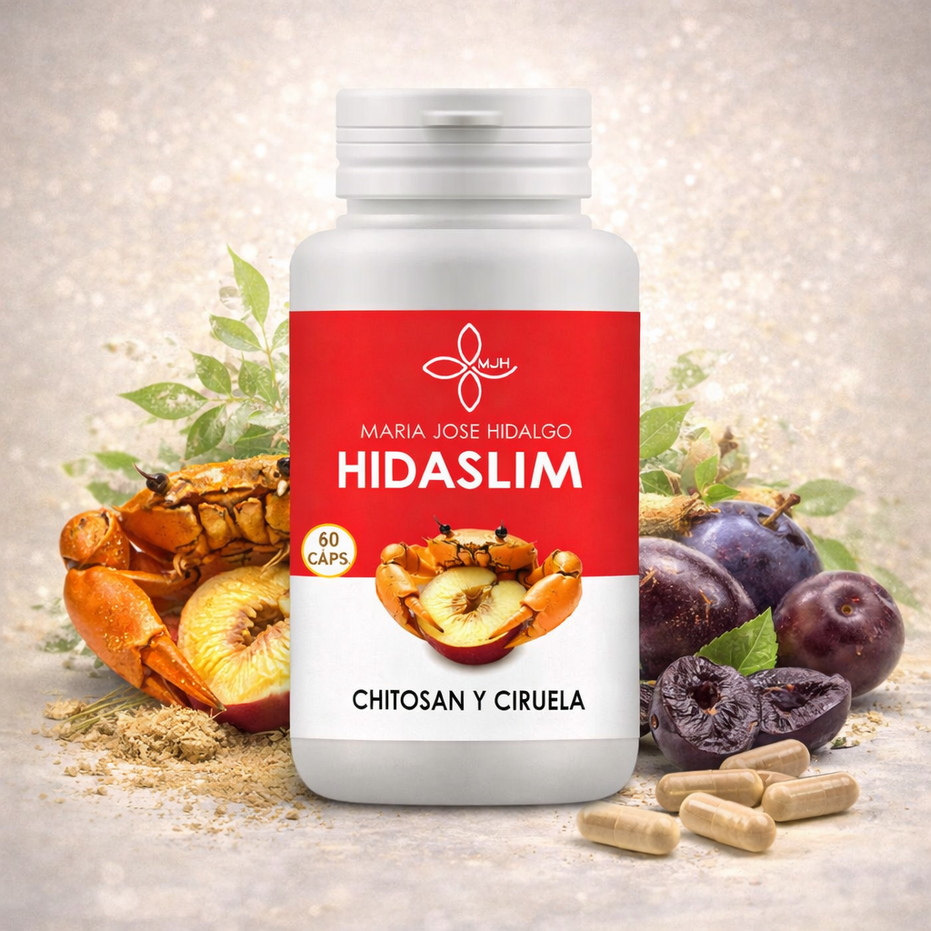 HIDASLIM María José Hidalgo tiene como principal ingrediente la fibra polisacarídica de chitosán que es una fibra de origen crustáceo. Además, viene reforzado con ciruela y vitamina C.