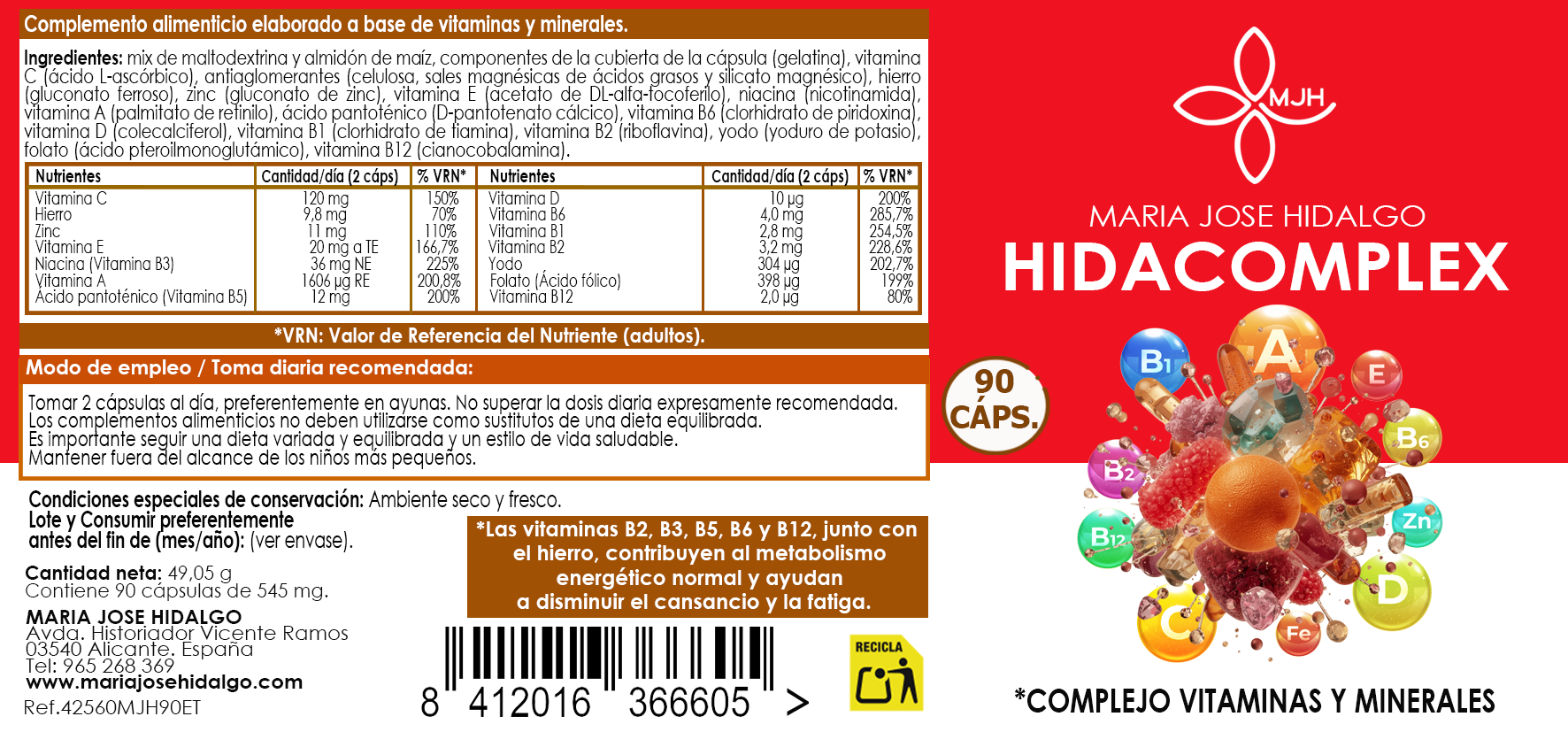 HIDACOMPLEX Multivitamina 90 Cáps. MARIA JOSE HIDALGO