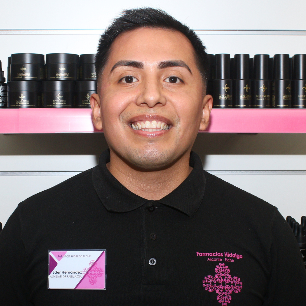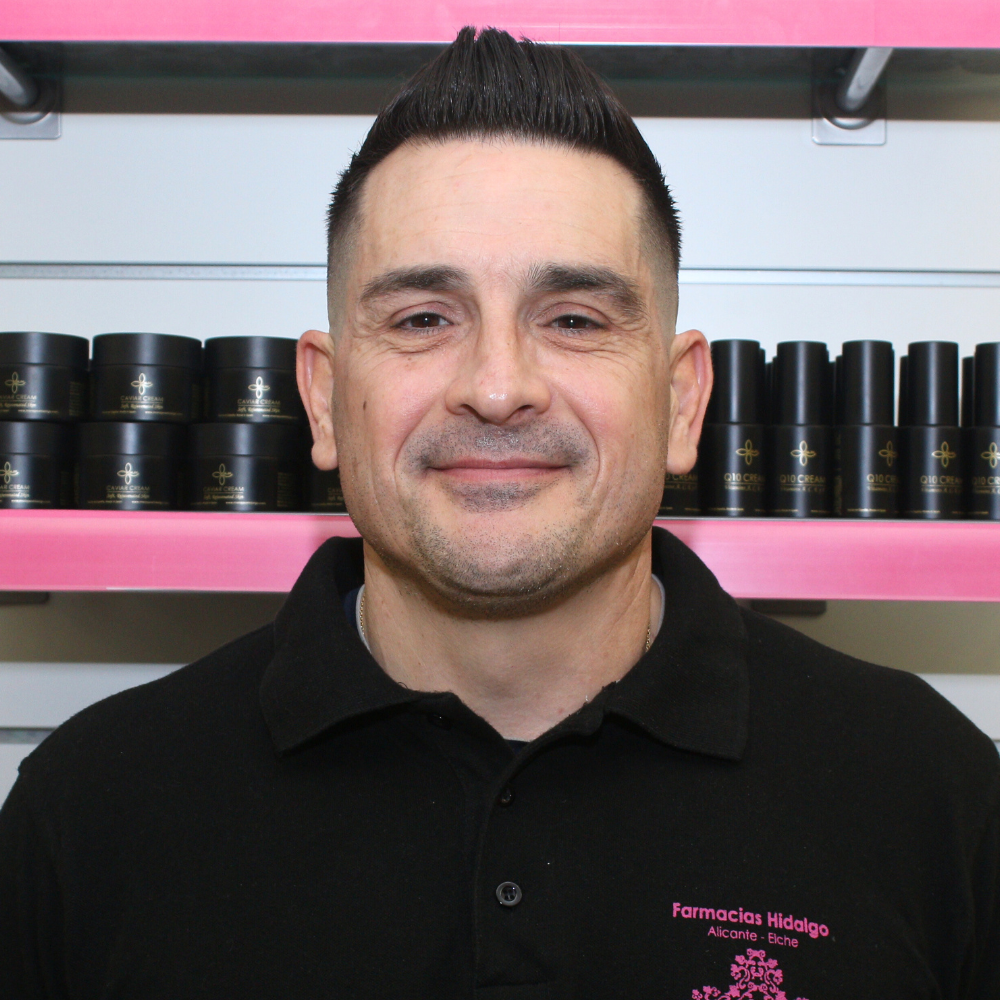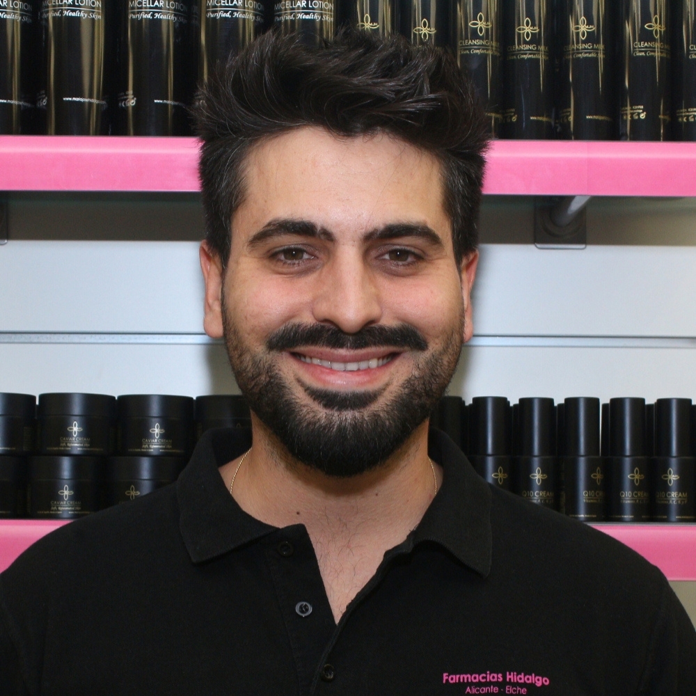Técnico en Farmacia y Parafarmacia en el instituto Montserrat Roig (Elche). En Farmacia Hidalgo es el responsable de la zona infantil y botiquín.